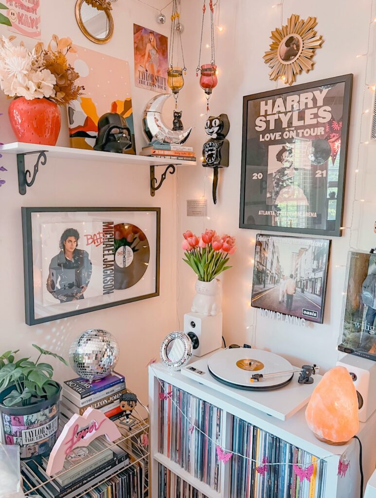I owe it all to Harry Styles’ debut solo album. Something about that album reignited the fangirl in me and I remember on a random day passing by the record section of a Target and seeing the album on the shelf. I stopped and picked it up for a moment, but then moved on because I didn’t have a turntable at the time. I remember not being able to stop thinking about it for days… just how cool it would be to own and listen to the album that way. I ended up getting a turntable and a copy of the album for my 18th birthday a few months later!