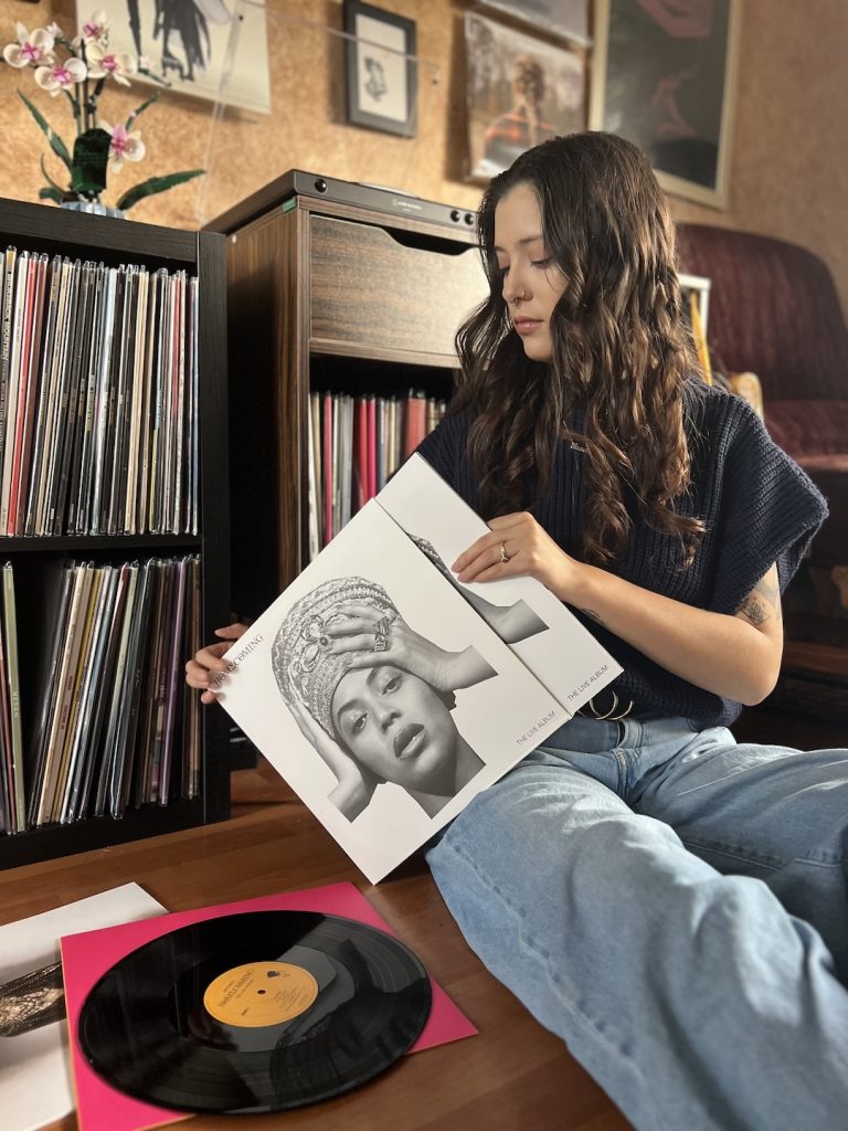 I love being able to physically own my music. When I was younger, having the CD from Destiny’s Child, *NSYNC, or Britney Spears meant I could play those albums again and again. That connection never really left. Vinyl just became a deeper version of that experience. There’s something special about holding the artwork, placing the needle down, and being fully present with the music. Vinyl slows me down and invites me to listen more intentionally in a way streaming doesn’t.